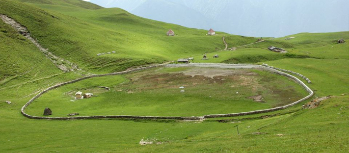 Amongst all the Treks in Uttarakhand, Dayara Bugyal is considered to be the most breathtaking. The trek brings us to a highland meadow situated in the Uttarkashi district of Uttarakhand which stands tall at an elevation of 10,000-12,500ft. The route of the Dayara Bugyal Trek trails through gorgeous Oak forests, clear water bodies and sprawling grasslands while offering views of specks of huts, grazing sheep all while overlooking the valley and high-rise mountains. Wild flowers also bloom around streams and brooks that run across the pastures. This lush green expanse of meadows serves as an excellent destination for skiing during winter and is spread over 28 sq km. This breathtaking location is nestled amidst towering snow-peaked mountains. While on this memorable Himalayan Dayara Bugyal Trekking Tour in India at Uttarkhand, catch sight of the lake of Barnala Tal strewn across the green alpine prairies– in whose reflection the peaks look even more beautiful.