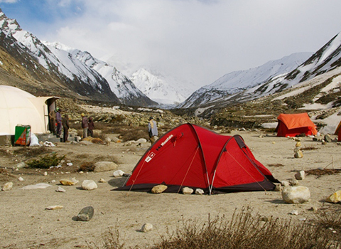 Accommodation in tents on share basis during trekking.