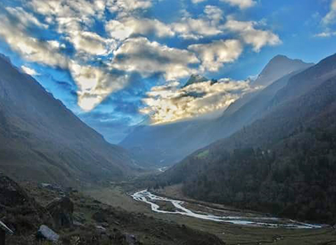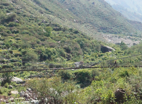 An adventuorous Taluka is a very small village with contrasting architecture Start trekking towards Puani Garaat/Osla descending to the river valley of Supin Along the way you will cross the Siyangarh cemented bridge to reach Dhamtir village having a magnificent views of lush green meadows,vegetation,orchids etc…You will reach Puani Garaat/Osla between 5pm to 6pm. Enjoy hot freshly cooked snacks and dinner before going to sleep in the tents.