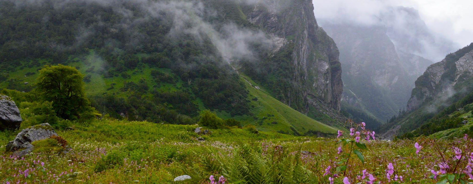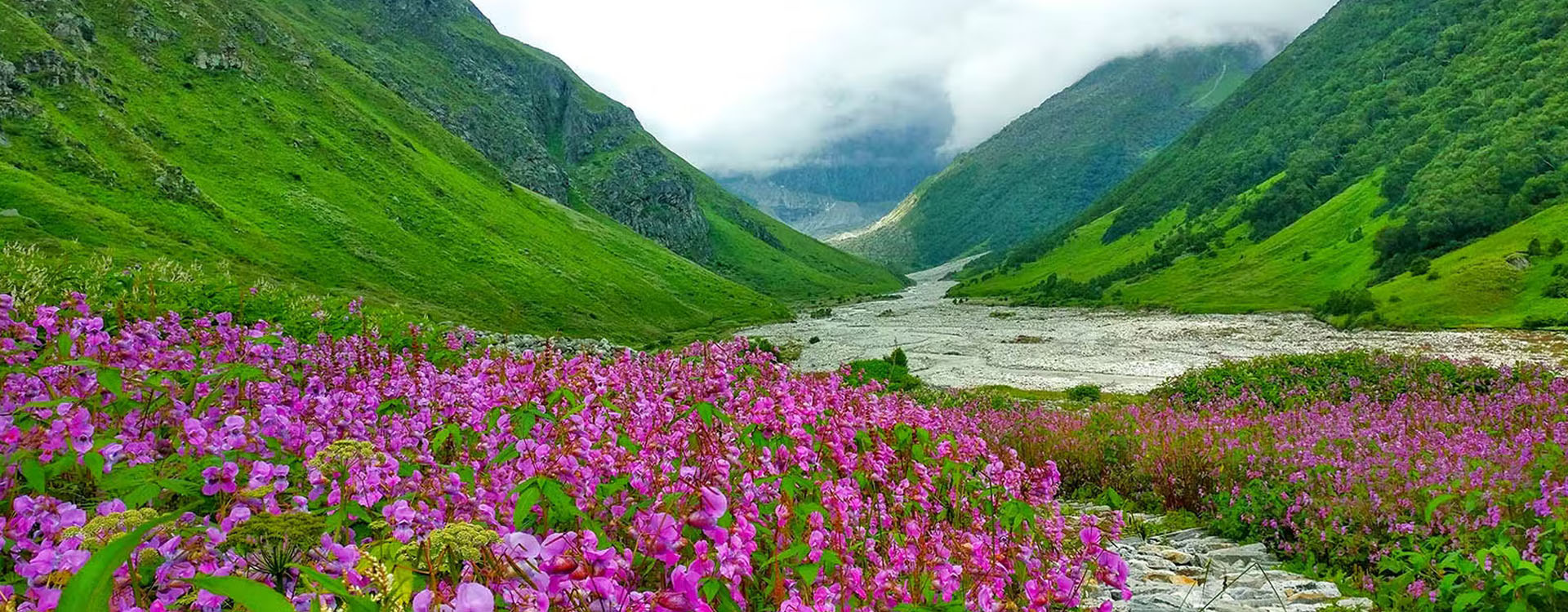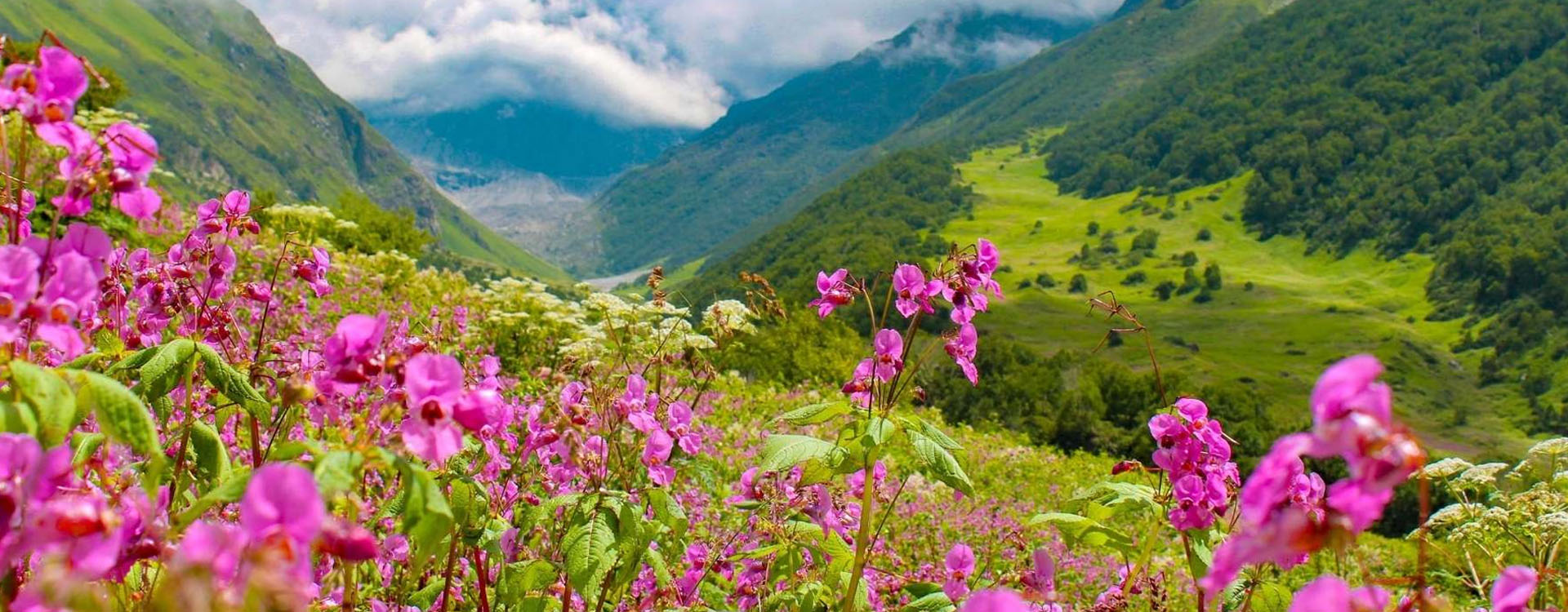 Deep in the heart of the Himalayas, is this spectacular ' Valley of Flowers'. Many varieties of Himalayan wild flowers bloom here. Post monsoons, the floor of the valley is covered with a carpet of myriad colours ! It is an awesome sight of colours with a contrasting back drop of majestic peaks.